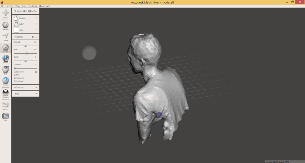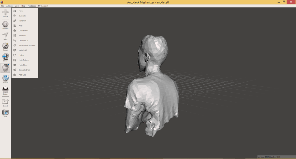 You'll not get a perfect model. So we will do a bit of editting using Mesh Mixer. On mesh mixer you have many tools on the left to edit, fill, or sclupt your model.