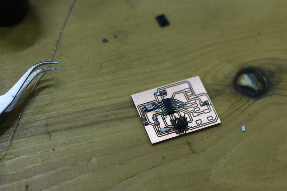This week it's easier for me to solder, practice makes perfect. I had a little difficulity soldering the resonator, as it has no pins or pads. But I find an easy way to solder such a component. All what you need to do is to add some solder to the pads, then using a tweezers hold the component on the top of the pads (on which you have added solder), and then use a hot air to melt the solde and gently push the component downward to sink in the solder.