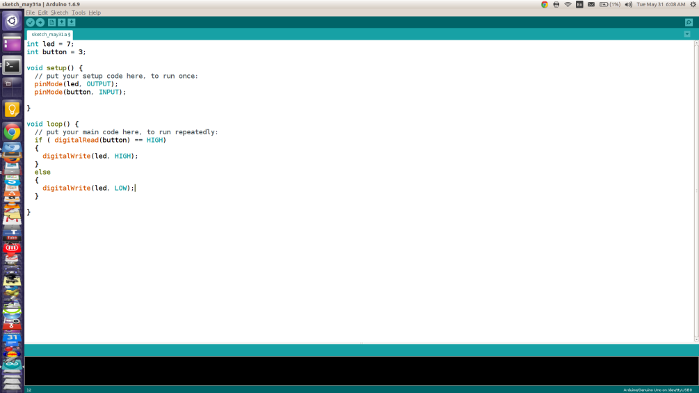 Now it's time to compile and upload the file on the board. First we make the .c file using make -f push-button.c.make