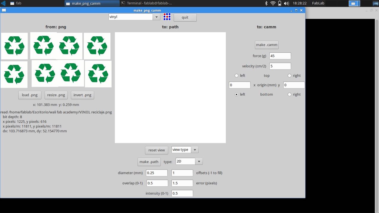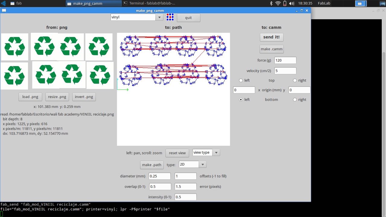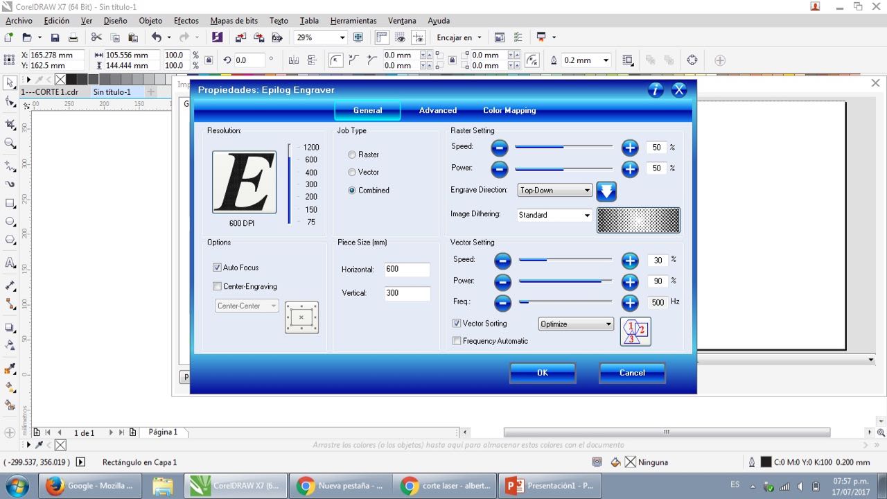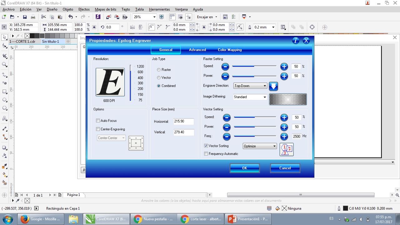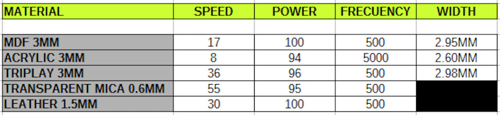 These are the settings that you use for the different tests that you perform in laser cutter. Settings for speed, power and frequency that vary depending on the material you are going to use.