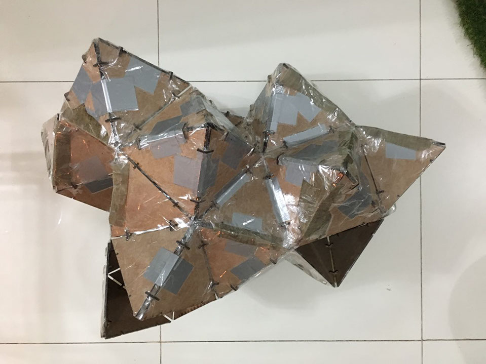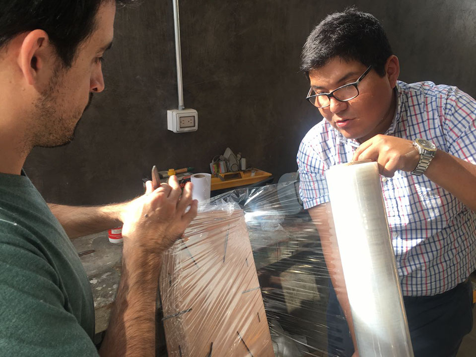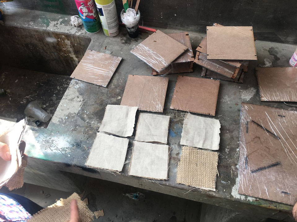 The second test was to compress the material between two mdf using presses. We let the samples dry outside and it took just under two days to dry well. The results as seen in video 2 were: very even texture, you can see the natural fiber and the material is tough but flexible. This was undoubtedly the best result.