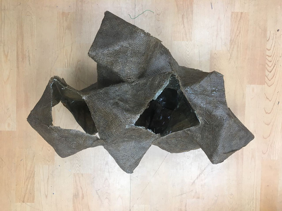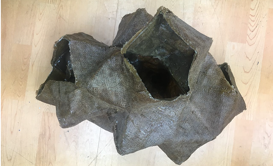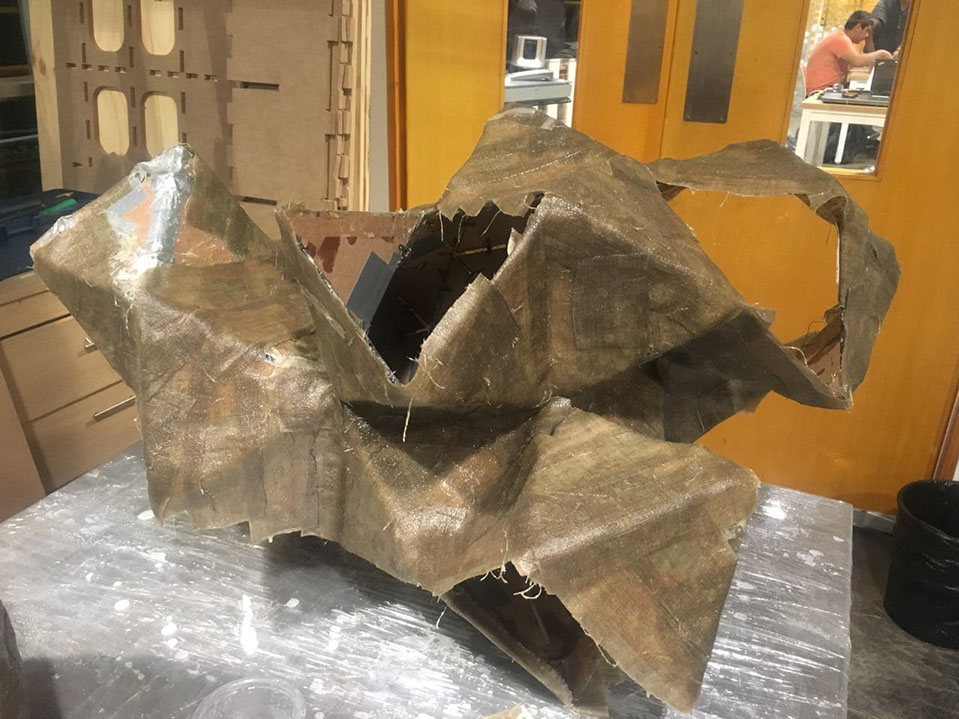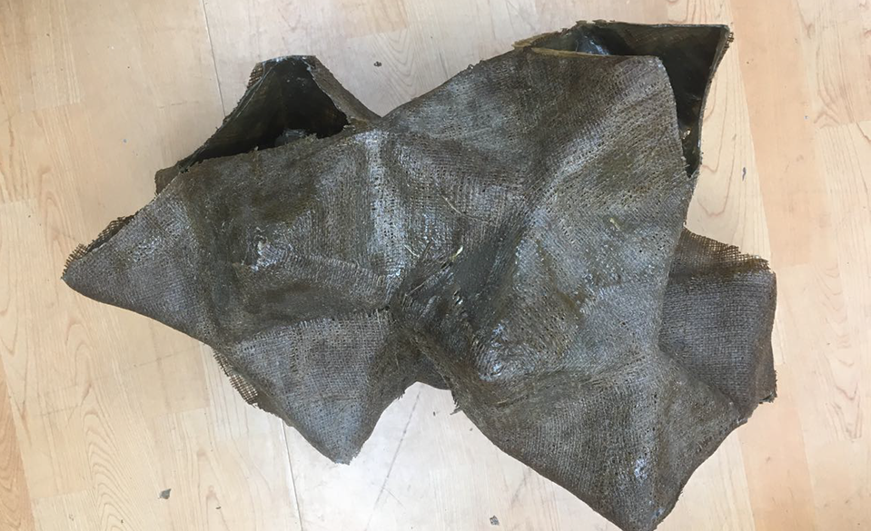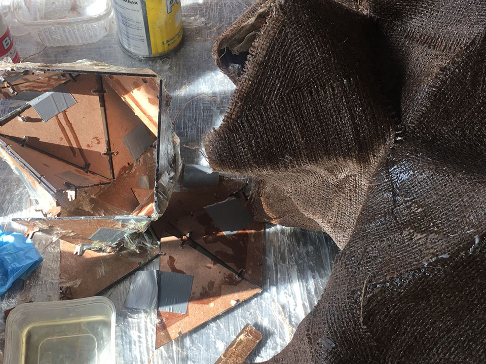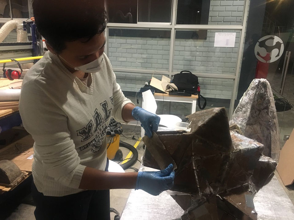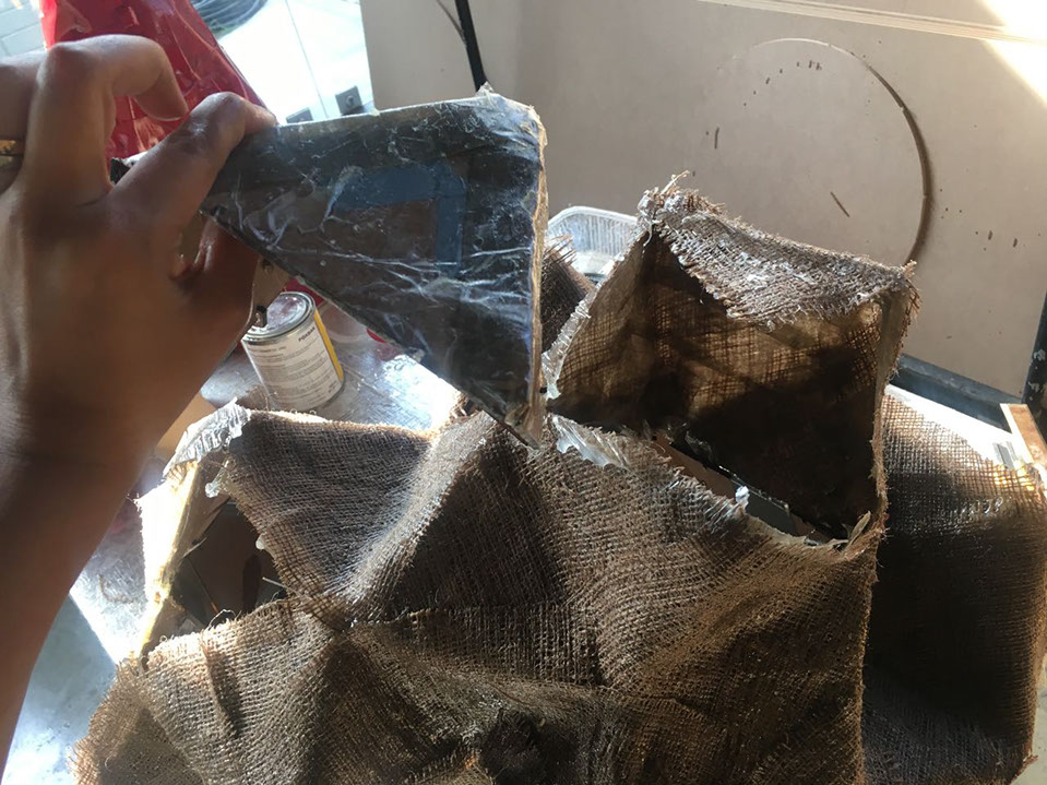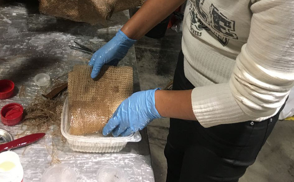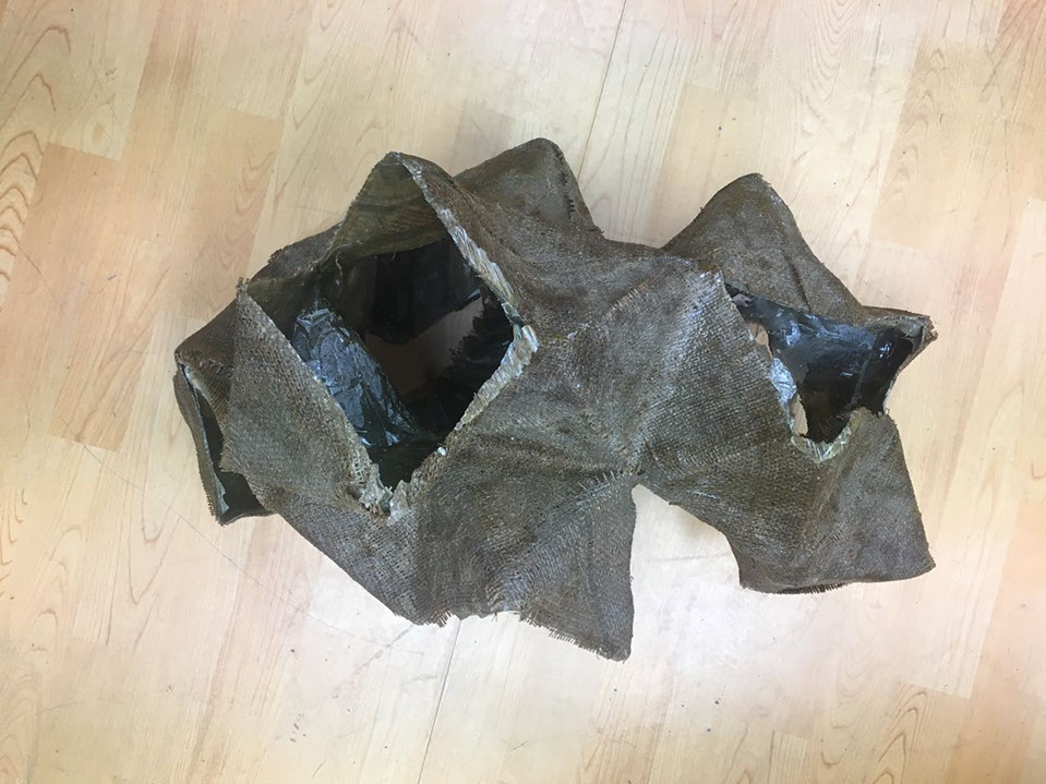For the third test we remove the resin with the hands tightening as much as possible. We place the samples inside mdf supports and place them inside a plastic bag that has a valve to extract the air with a vacuum cleaner. It took two days to dry well. The result as seen in video 2 was: Texture not very even, material more or less flexible and more or less compact.
