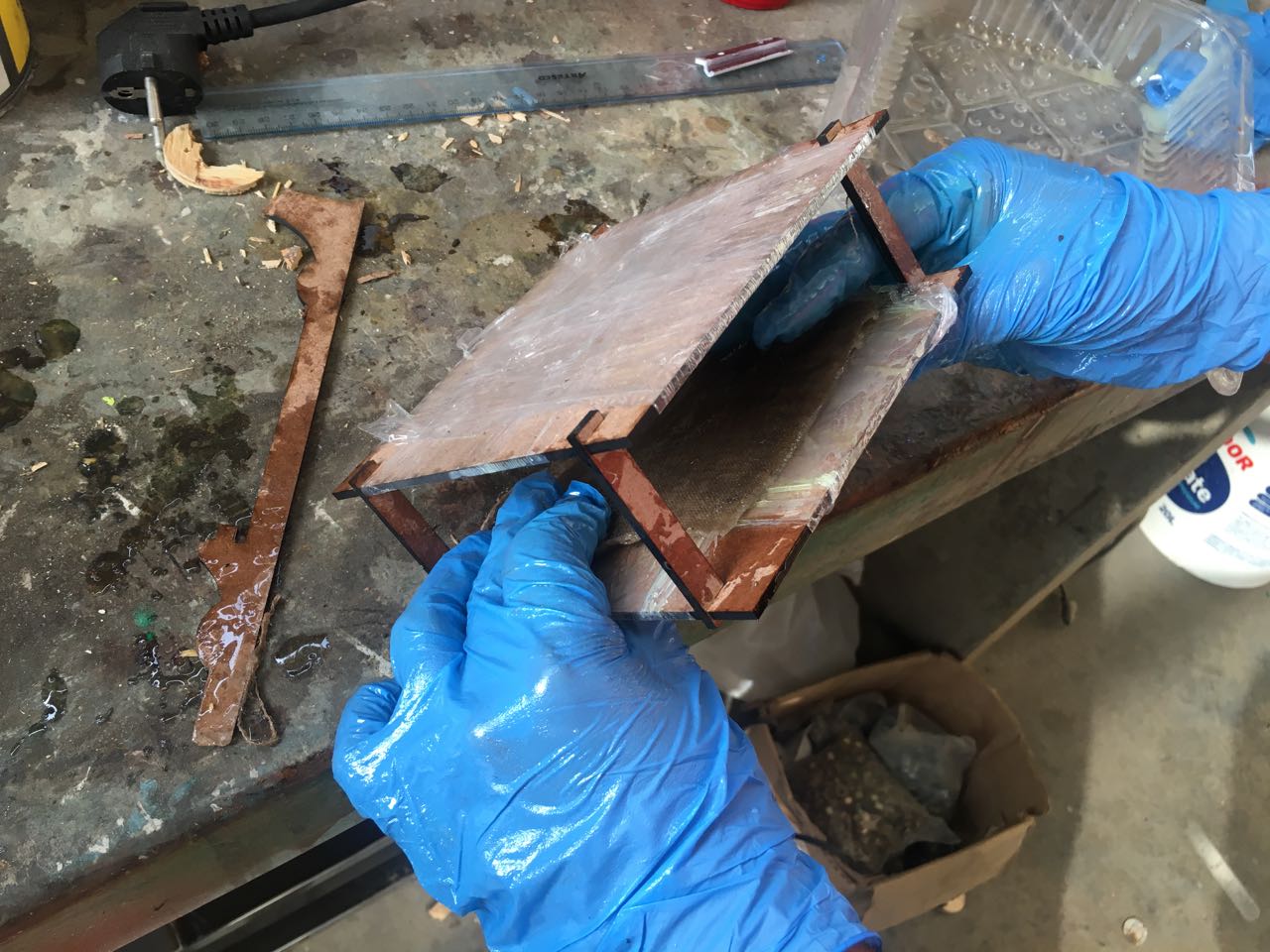 The first test we did was to remove the resin with the hands tightening as strong as possible. We let the tests dry outside. It took two days to dry well and the result as seen in video 2 was: irregular texture, very compact and non-flexible material.