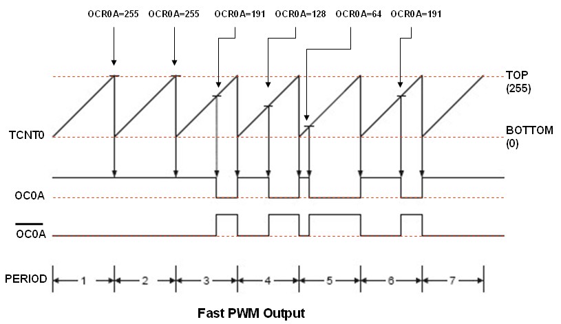 Additionally, we watched a video about FASTPWM because Attiny45 implements this PWM mode.