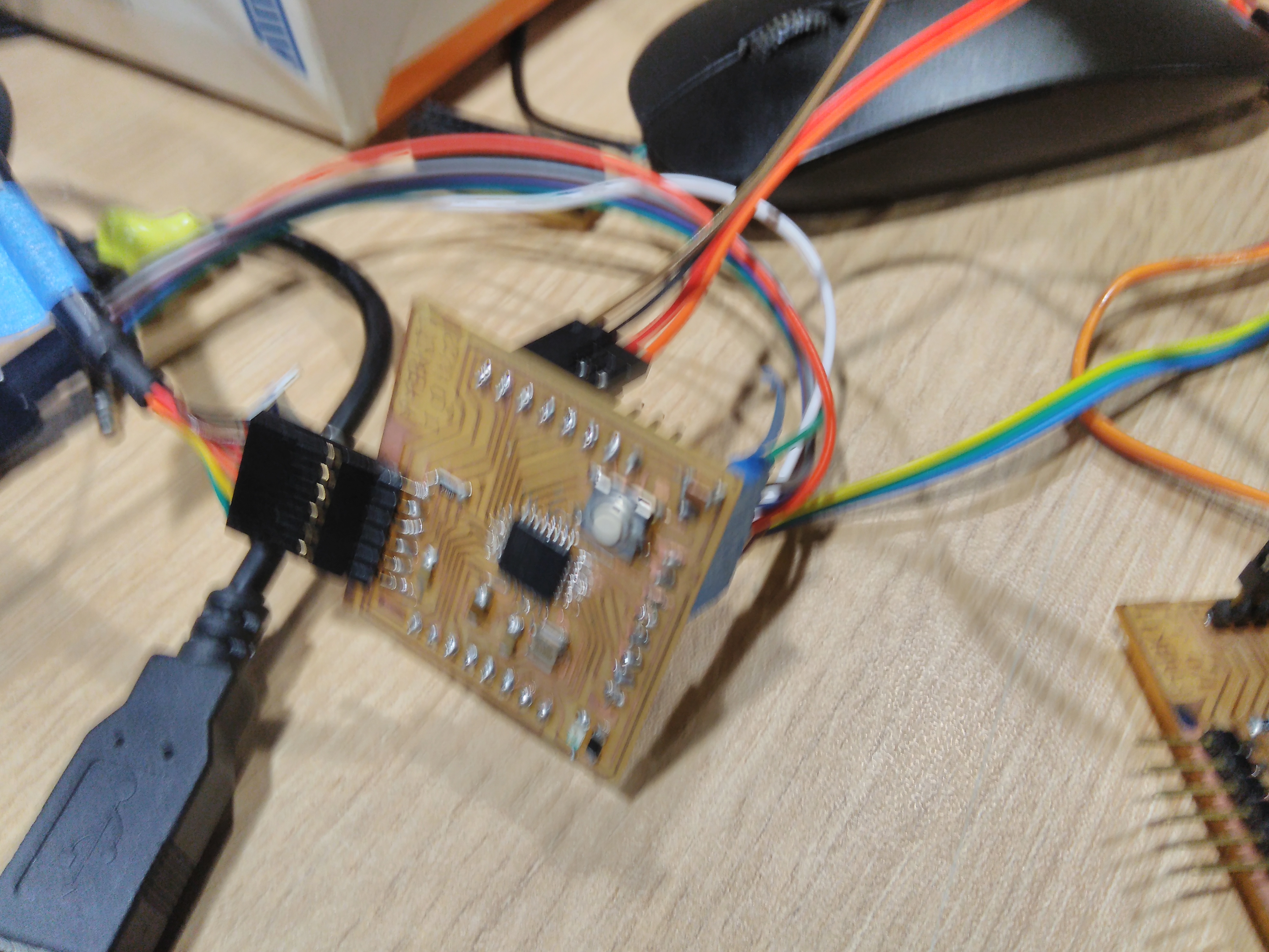In the begining of this assigment I have considered to make bridges and nodes for I2C communications. I have downloaded the files from fabacademy, but when I try to program the circuits, all of them have issues to upload .hex. So I reconsidered change the circuits by fabduinos. However, we kept I2C communication.