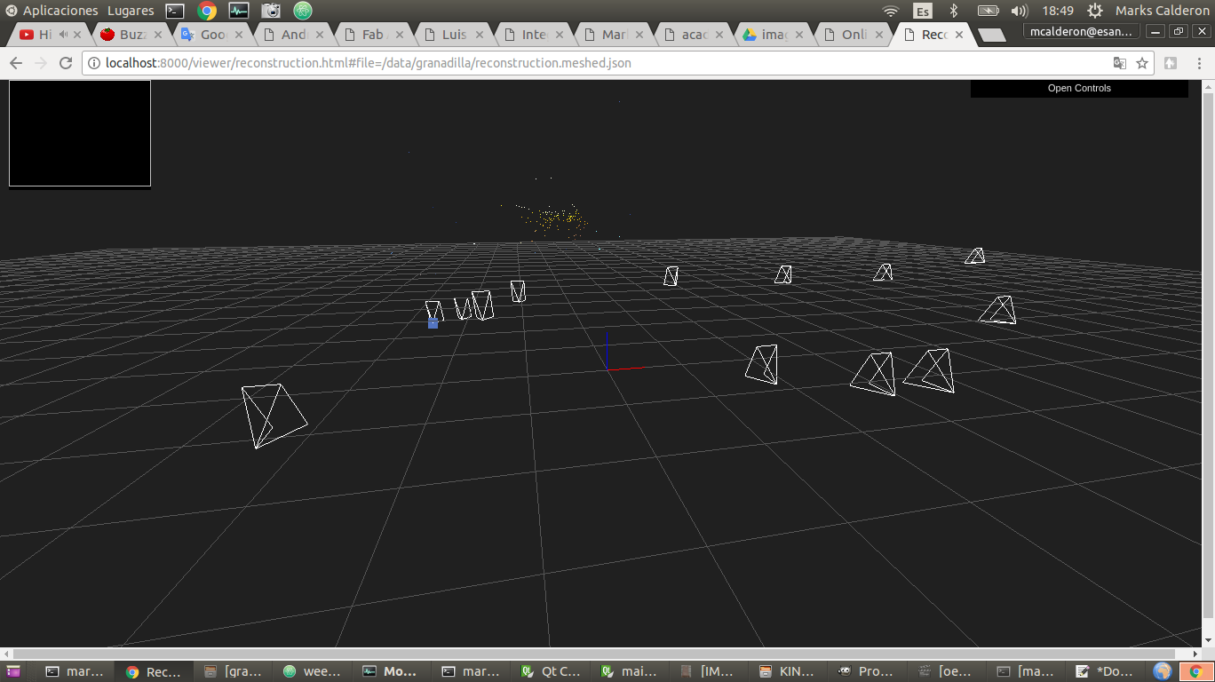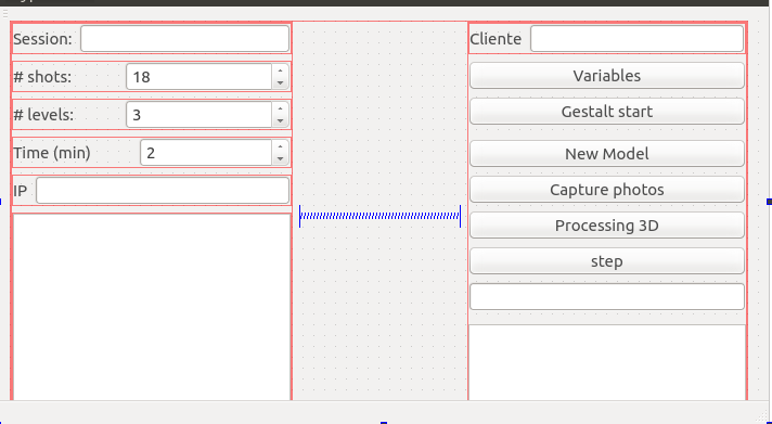 We followed the tutorial to create a GUI with python and Qt to control the machine with gestalt nodes, and communicate with android app to take and upload picture. After that it will run OpenSFM framework. It was the idea but in real we had issues with gestalt code and PyQt because they had different kind of threads. It was impossible to syncronize gestalts and machine, so we use the GUI to send images from phone and manually we write the commands to generate 3D model. The GUI source code can download here. The next images show the GUI and its source