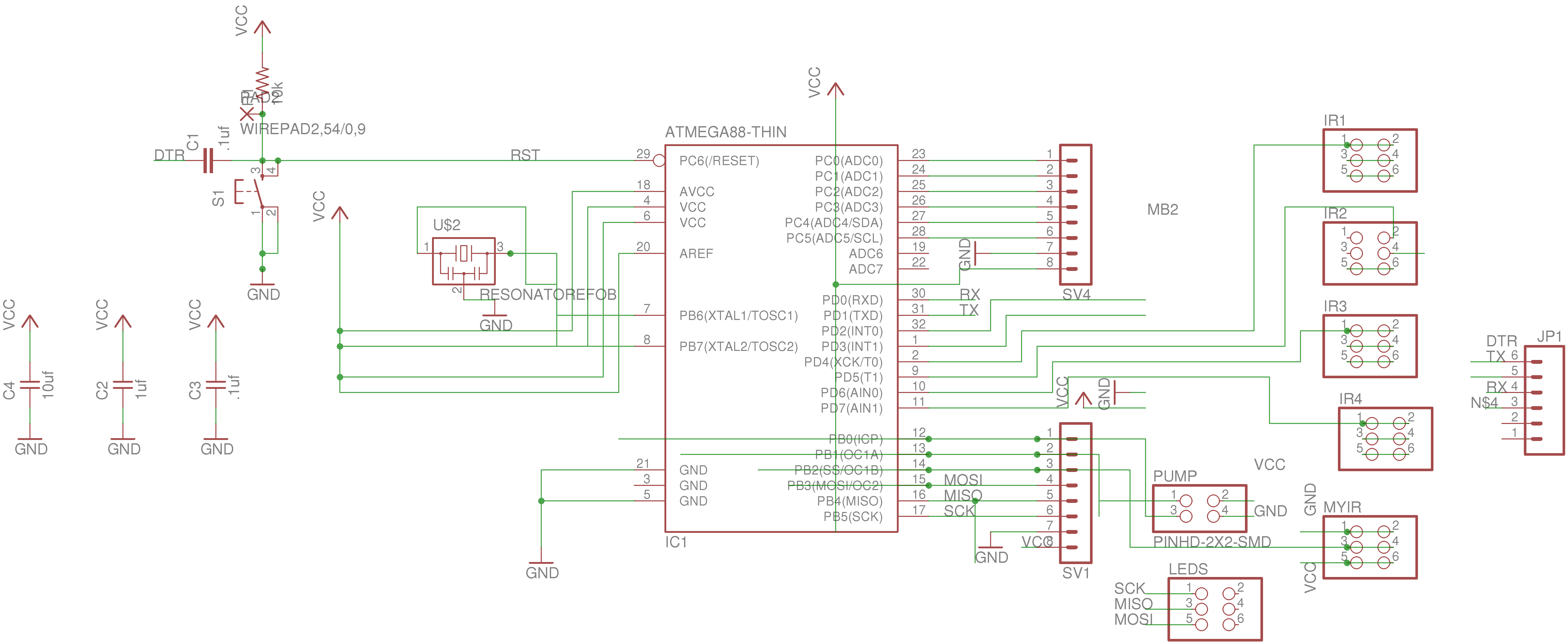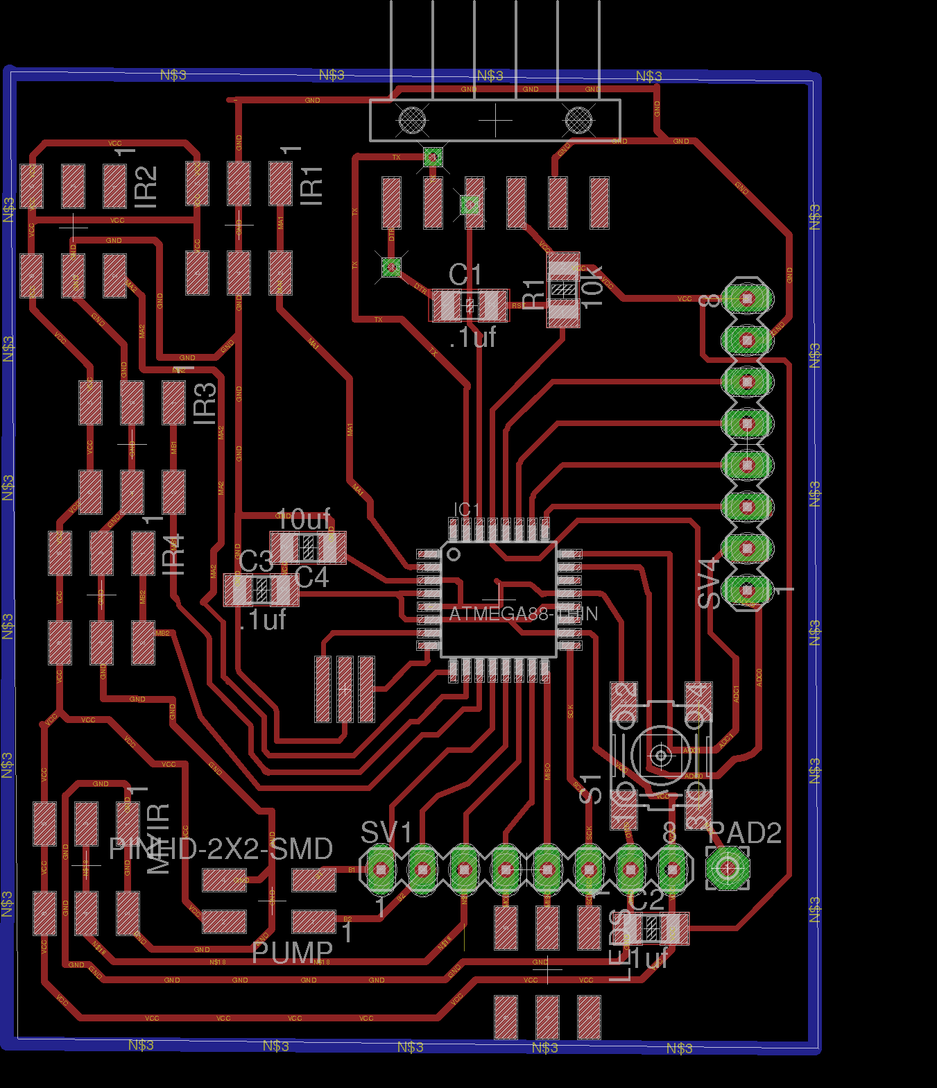 In this section we describe electronics PCB that machine uses. The elements have made IR sensor, H-bridge single,