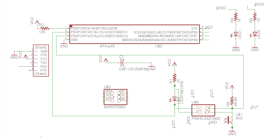 pins(13,12,1) with 2x3 headers which can connect with other fabduino through a pin and two pins to interact with