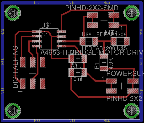 digital output.This board has a pin header 2x2 to connect h-bridge with power supply. Also, it has connected tree