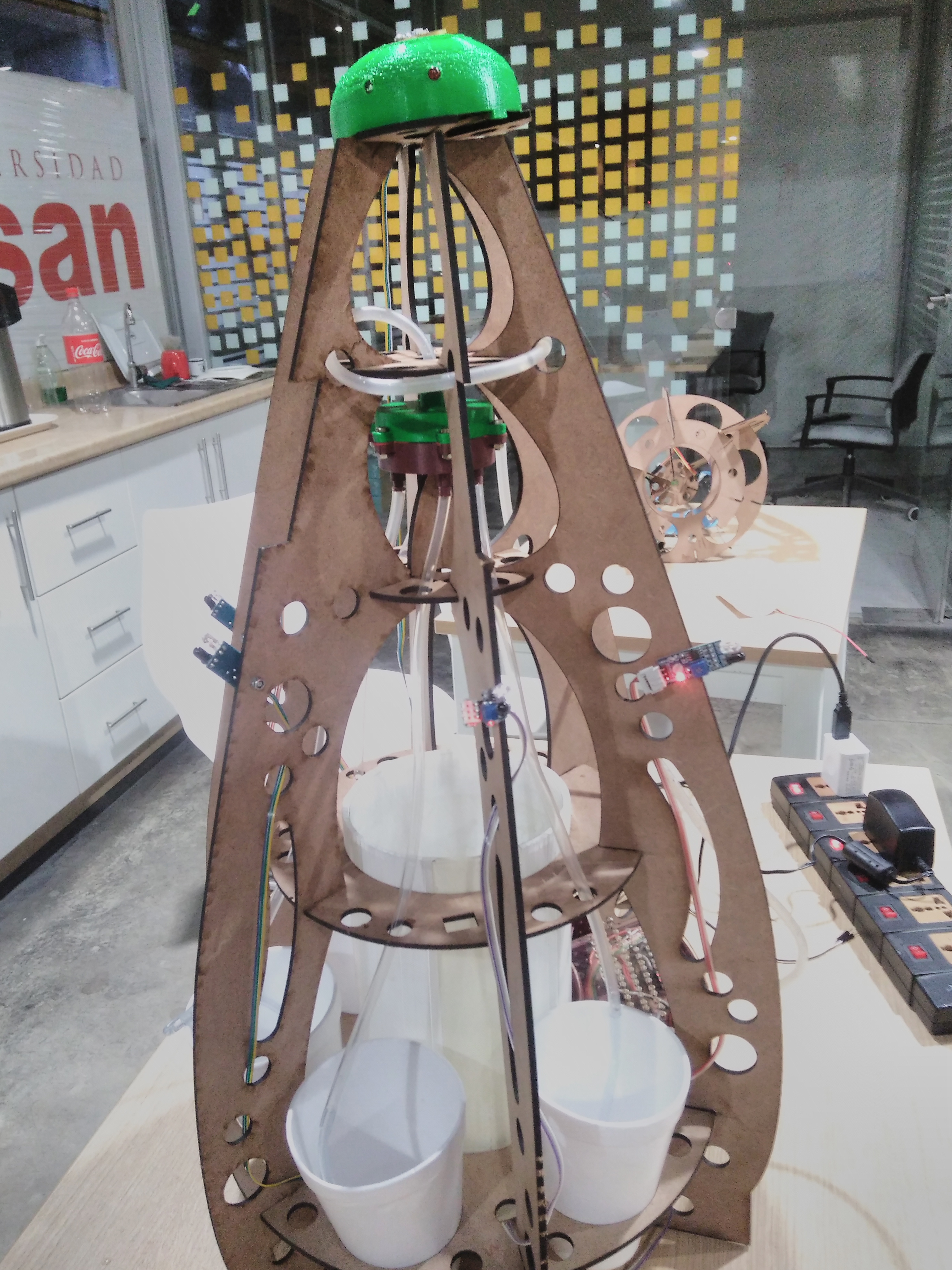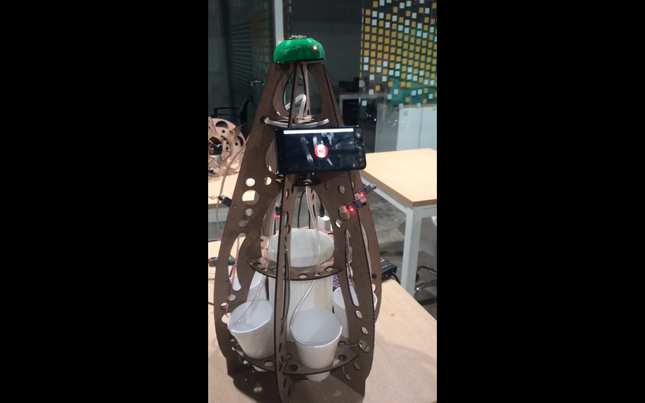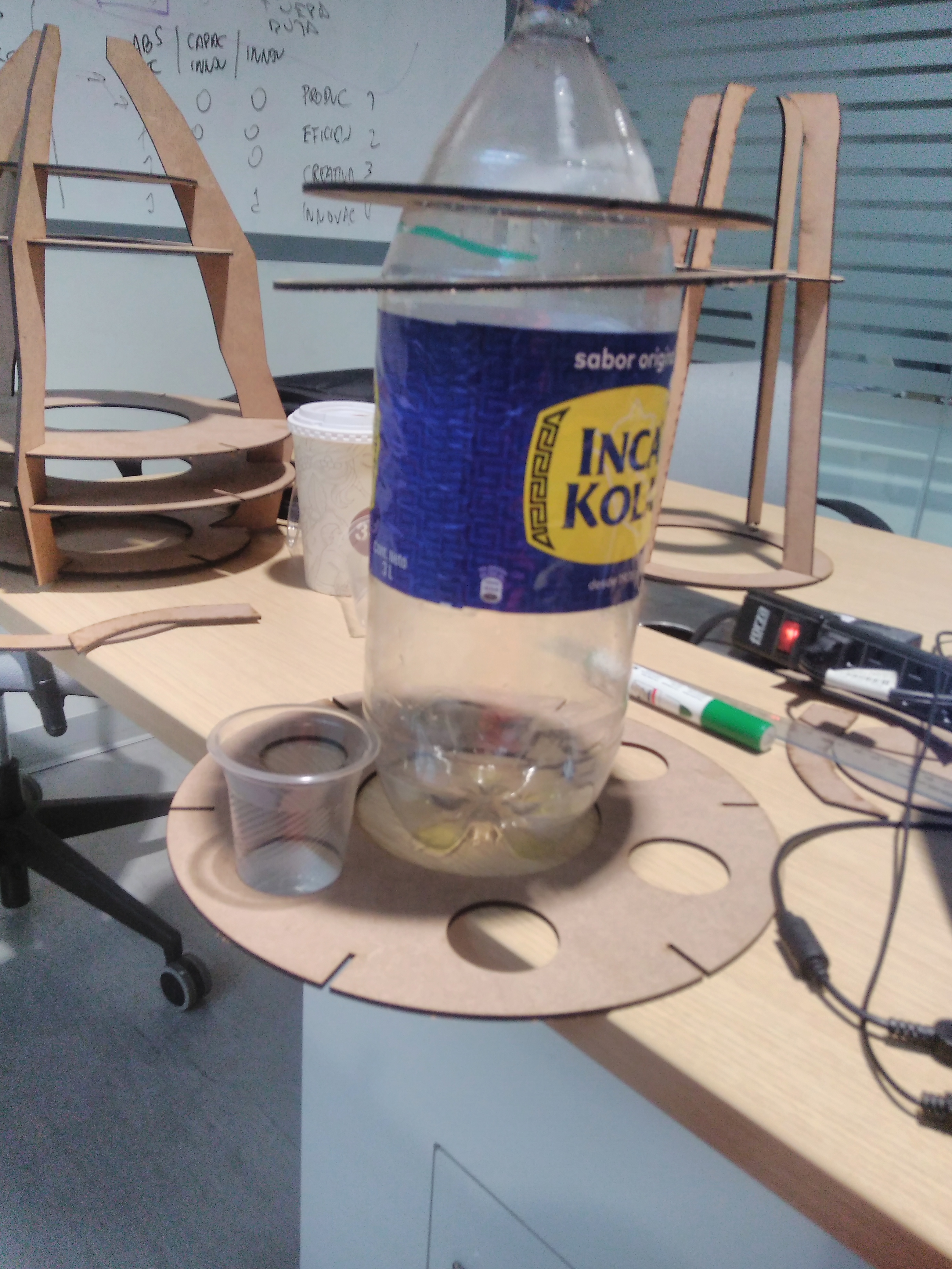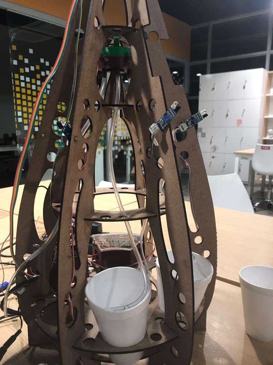 My structure is cool in shape but have limitation as space to put circuit. So I considered only dispensing four glasses and two of them, they will use the space to put a box which close circuits. This design shows in the next images and can download the CAD files