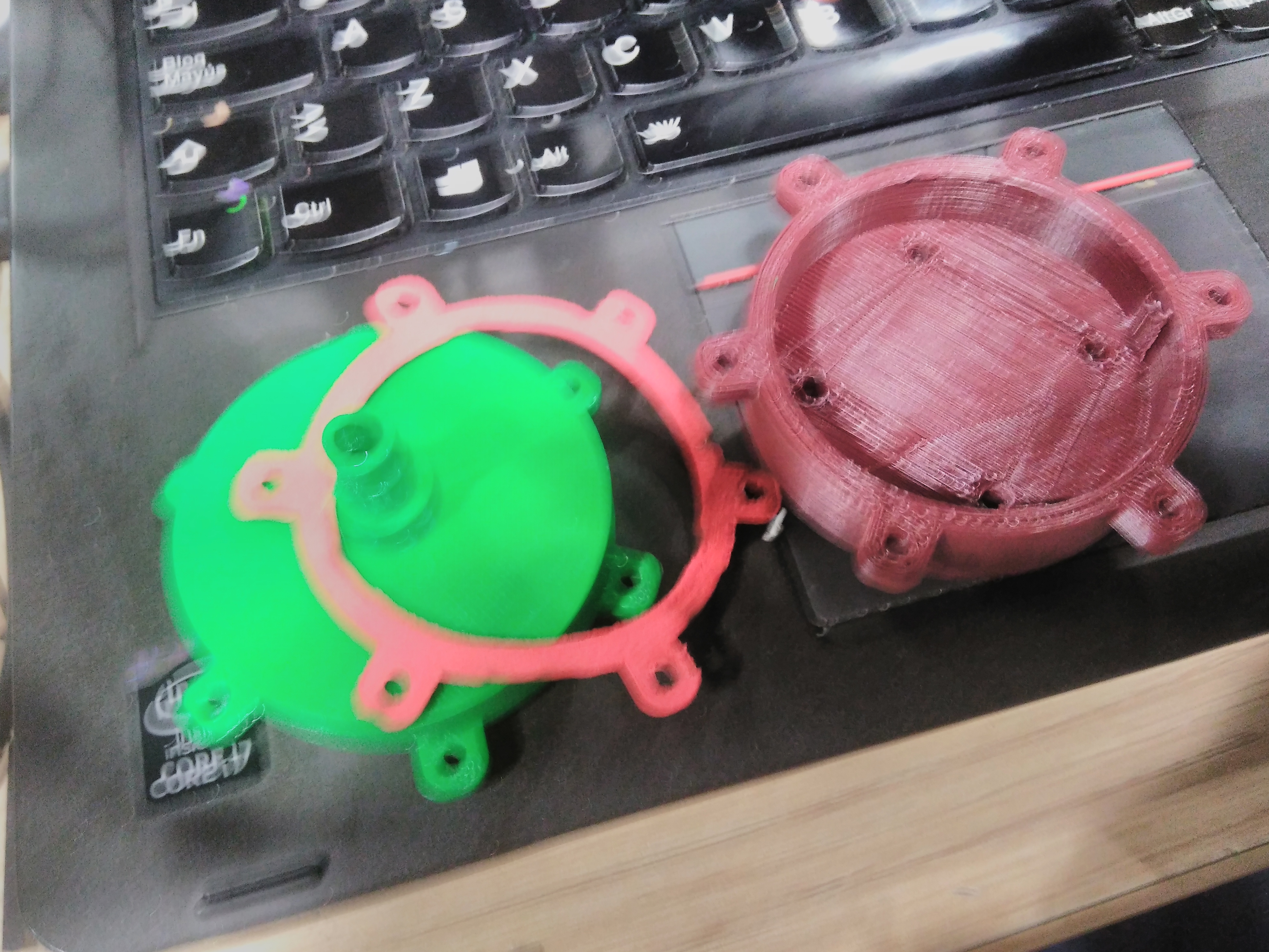 The valve was based on a simple idea of cow udder, which has more than two udders. But we considered a single flow input and multiple flow output. In the 3D printing the elements sent with 60% fill inside, this measure took to not filter water. If only joint the elements with nuts, the valve will filter water. So we cut foami with the form of valve, it puts in the middle of two elements to press. You can donwload the CAD files
