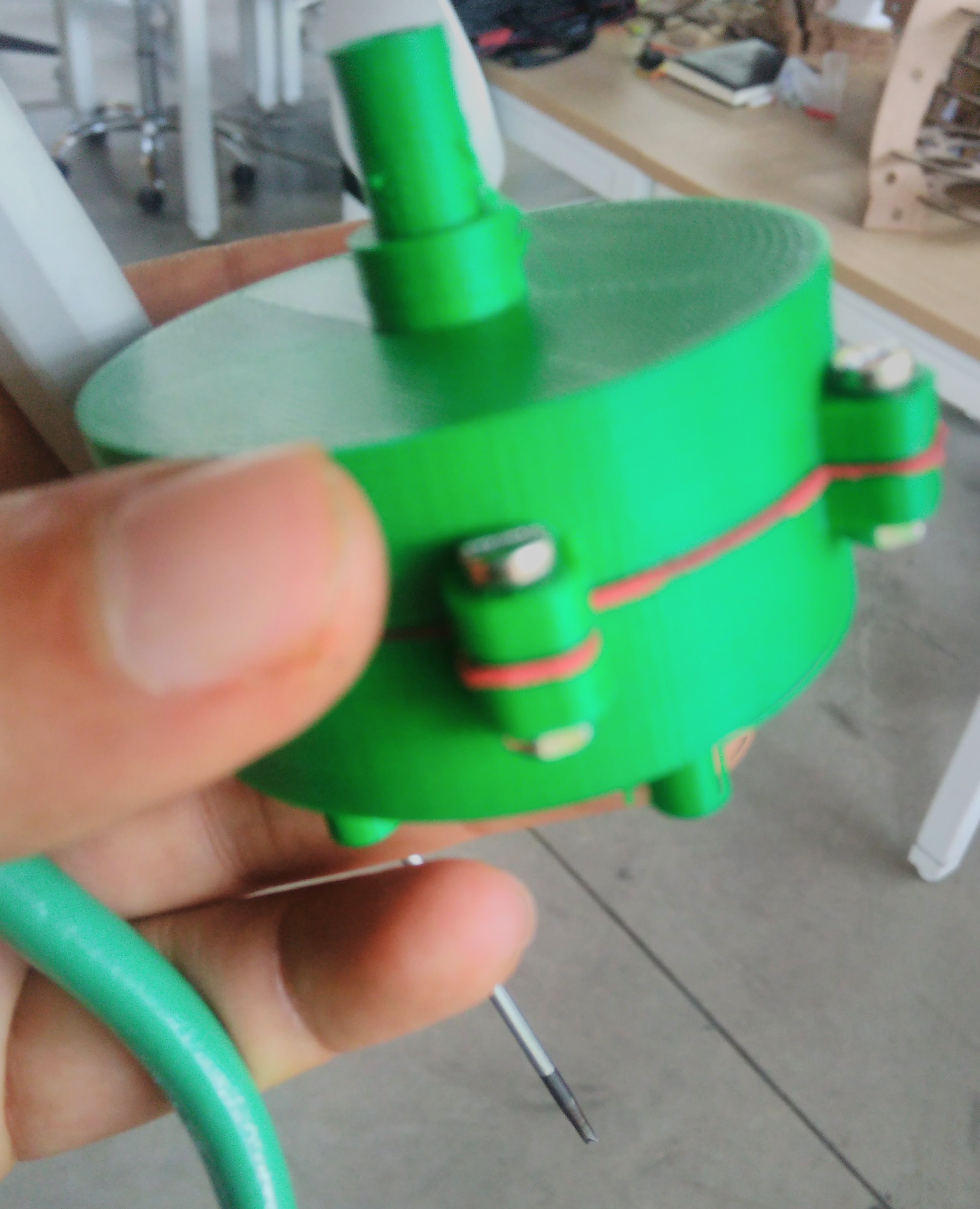 In this section we describe the 3D printing that we created. Three things designed here: head of machine , a valve and box to put the circuits. The first one was created to put leds and IR sensor, they are able when the machine is able to dispense or start the connection. A head complementary was a MDF desgin to fix with the supports. This design shows in the next images and can download the CAD files