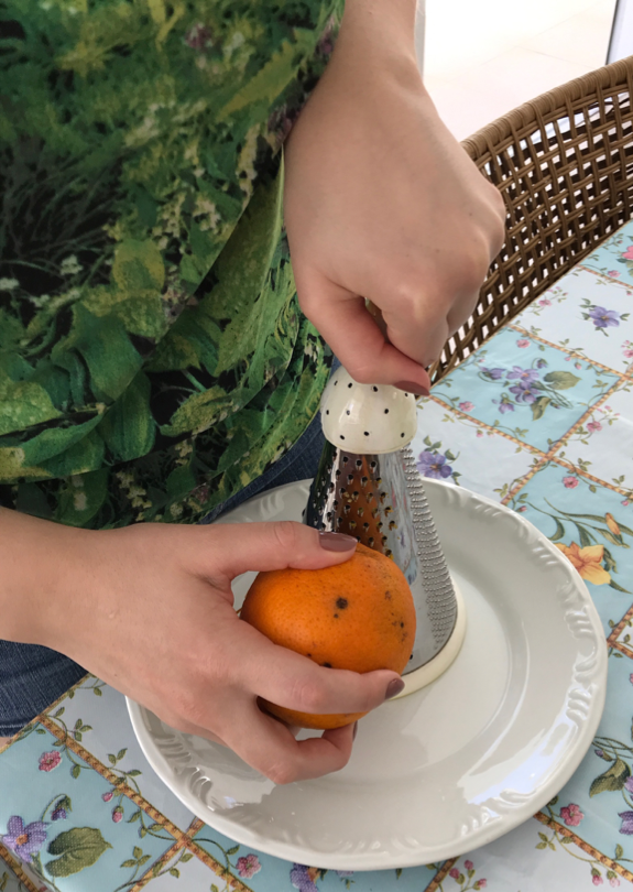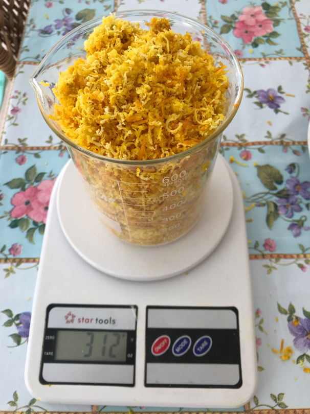 After I set up all the equipment and had all the materials ready, I started to grate the oranges, I used 13 oranges.