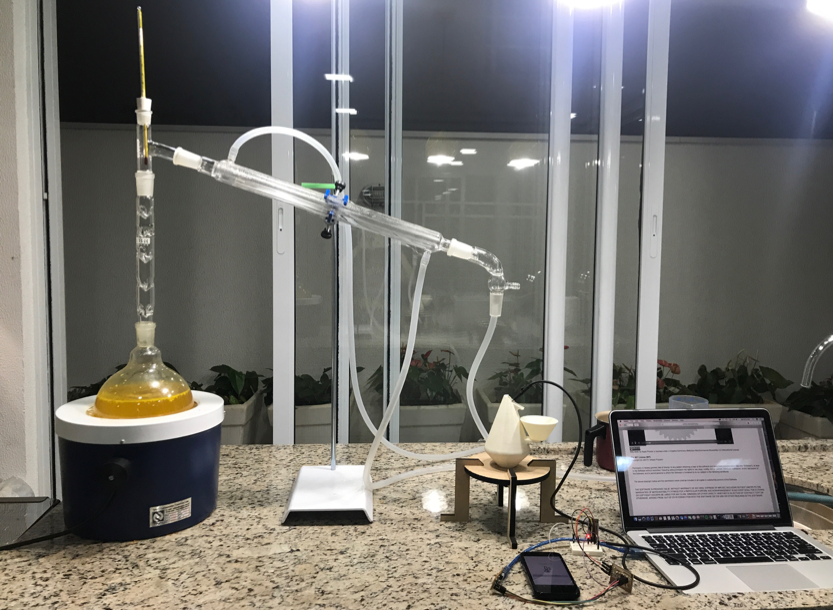 Here bellow is a picture of the full set up of the distillation equipment, the final project and the system I created.