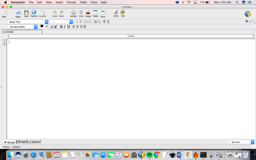 Here is an image of what KompoZer looks like when you first open it: