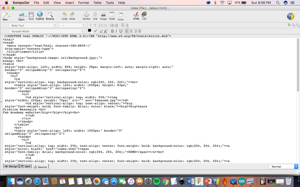 Here below is a picture of my first commands using KompoZer: