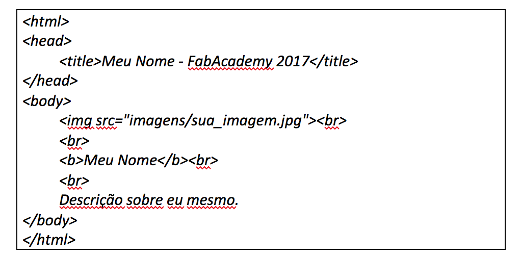 - Edit the code above by customizing your name, the name of your image and its description.