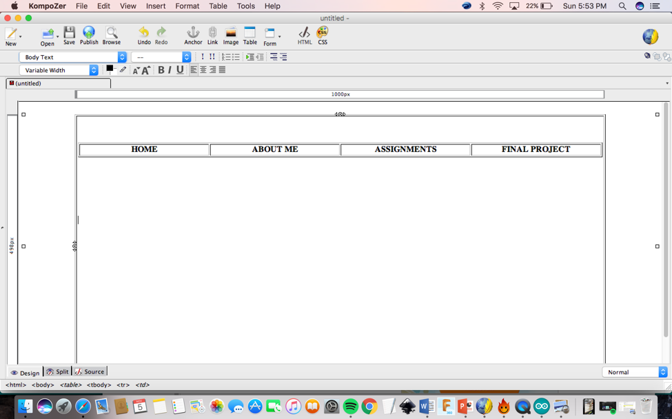 then wanted to create links for the HOME, ABOUT ME, ASSIGNMENTS, FINAL