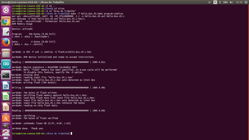 through the same ftdi. Whenever I type 0 on the computer, all the