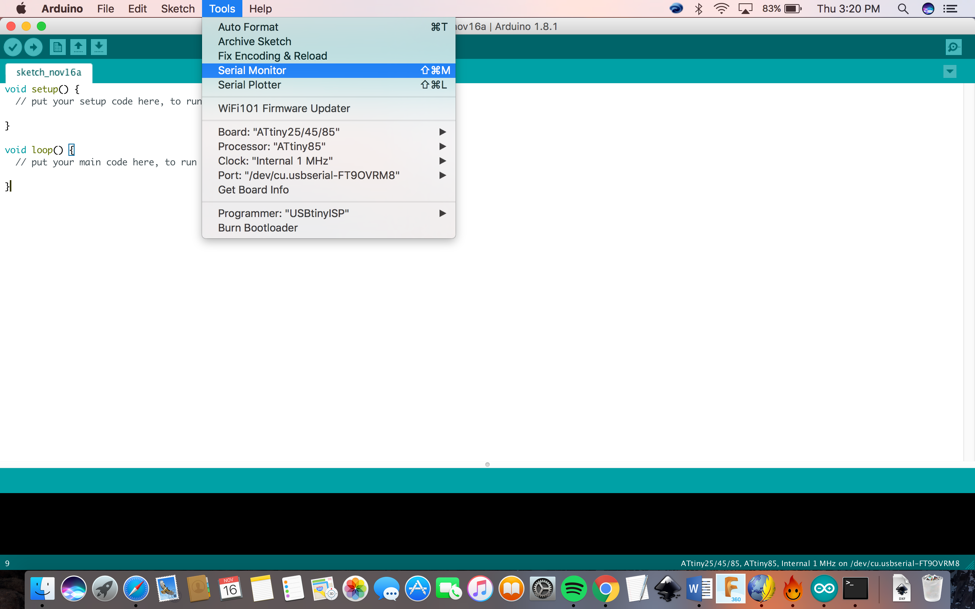 Then I opened the Arduino to run the program. I then went to Tools> Serial Monitor