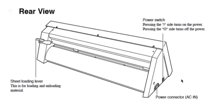 5)  After inserting the vinyl into the machine, pull up the lever at the back of the machine to ensure that the vinyl is securely loaded.