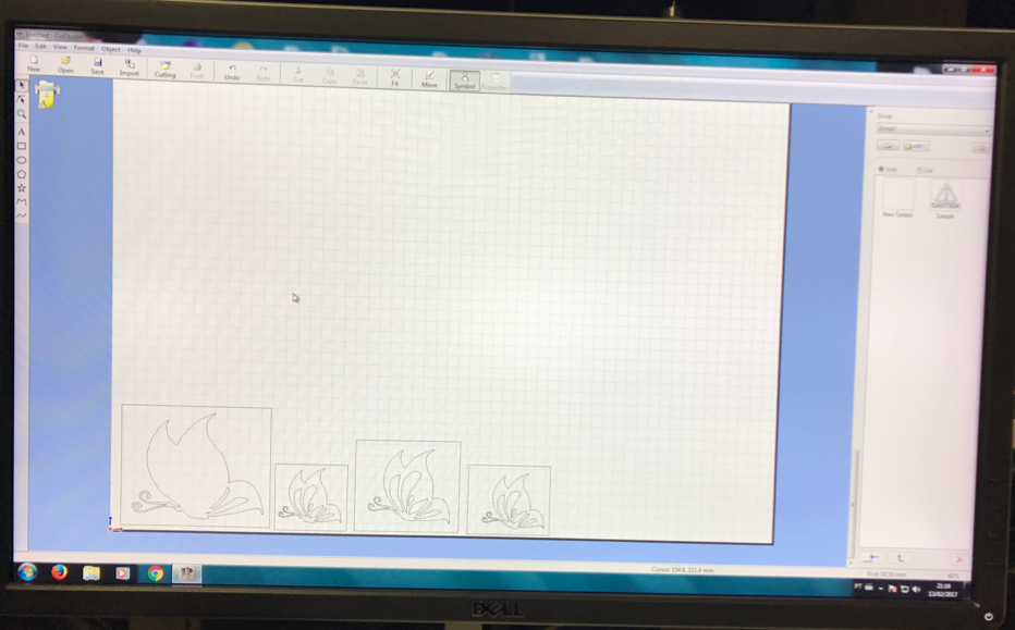 On the left side of the vinyl cutter is the power button, which you need to turn on. Now you need to select press “select roll” on the screen.The vinyl cutter will measure the width of the roll (in mm).Set the origin by pressing the "Origin" button on the control panel. After completing this step and material is placed correctly in the machine, check if it cuts your material properly using the button "Test". If not, adjust the force and the speed, or check if the blade is still good to use or if you need to change it. I chose to use a roll of black vynil material with the force of 100gF and speed of 10 cm/s to cut my image.