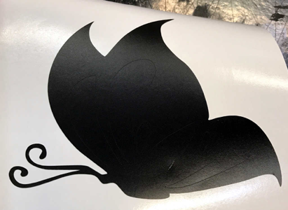 Once those steps are finished, you are ready to transfer your vynal image to the desired surface. Carefully apply transfer tape to the surface of the weeded vinyl. Rub the transfer tape onto the vinyl to form a strong bond between the tape and the top surface of the vinyl design. Then after rubbing, carefully pull the transfer tape (with the vinyl adhering to it) away from the vinyl paper backing. After you have removed the vinyl from the paper backing and it is attached to the transfer tape, apply it to the desired surface. Rub the surface of the transfer tape to ensure that the vinyl will adhere to the new surface. Then carefully pull the transfer tape away from the vinyl, leaving the vinyl attached to the desired surface.