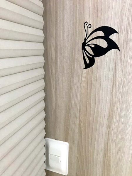 Here below you can see the vinyl butterfly and the butterfly on my closet: