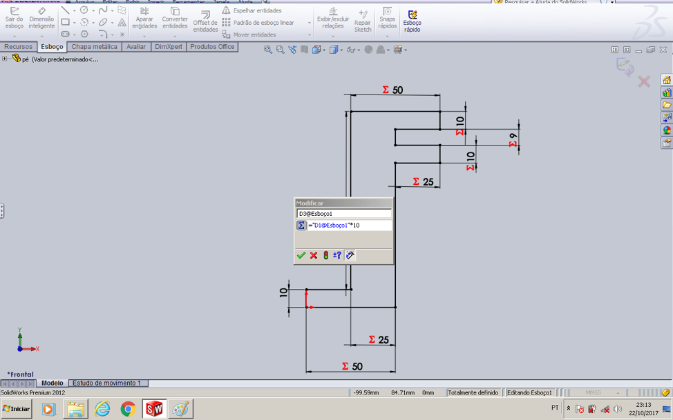 6)  Click on another sketch line and repeat steps except for this time insert an equation as you can see in the image bellow and