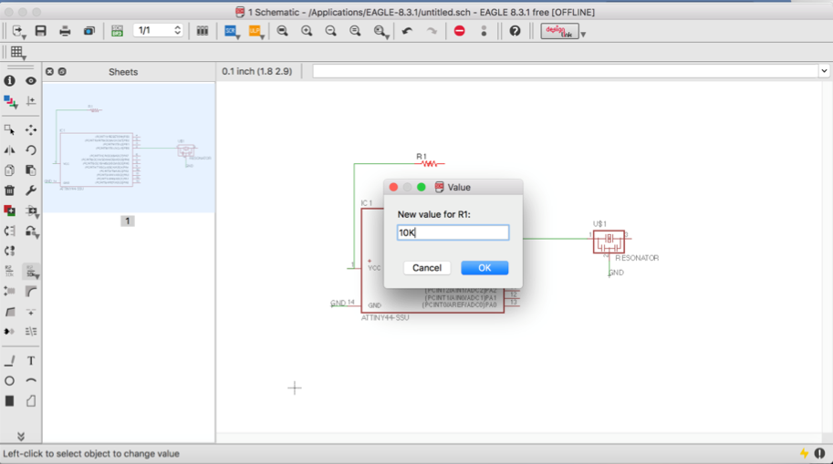 the value.In this case my resistor had a 10K value, so I typed it. After that you press ok, then the resistor now has the value