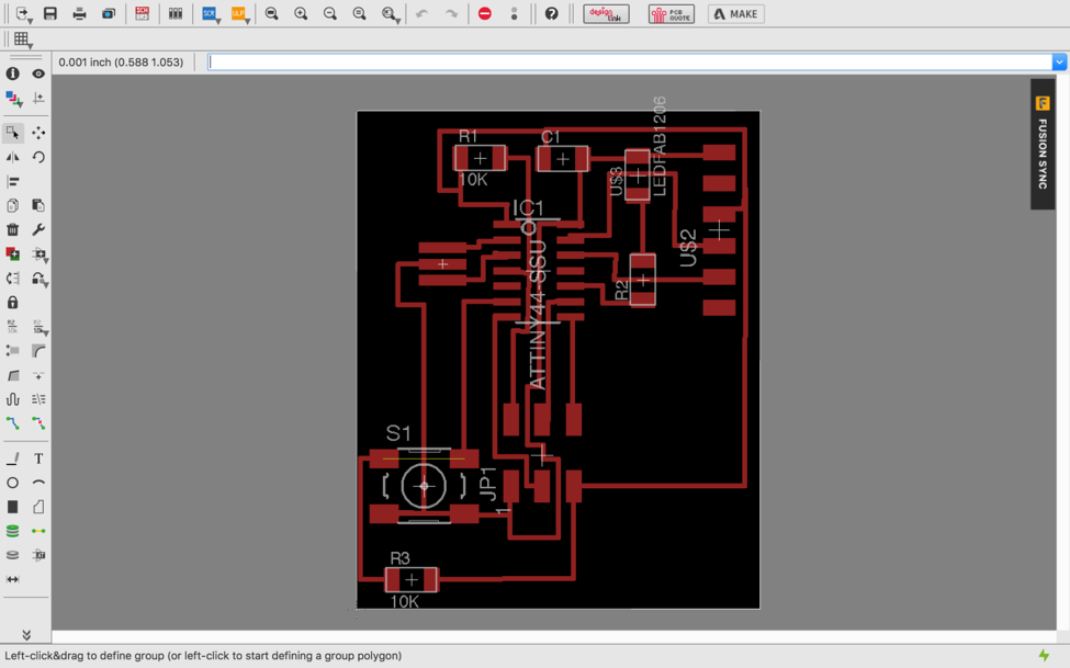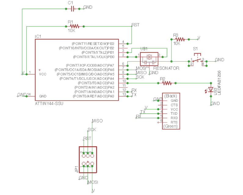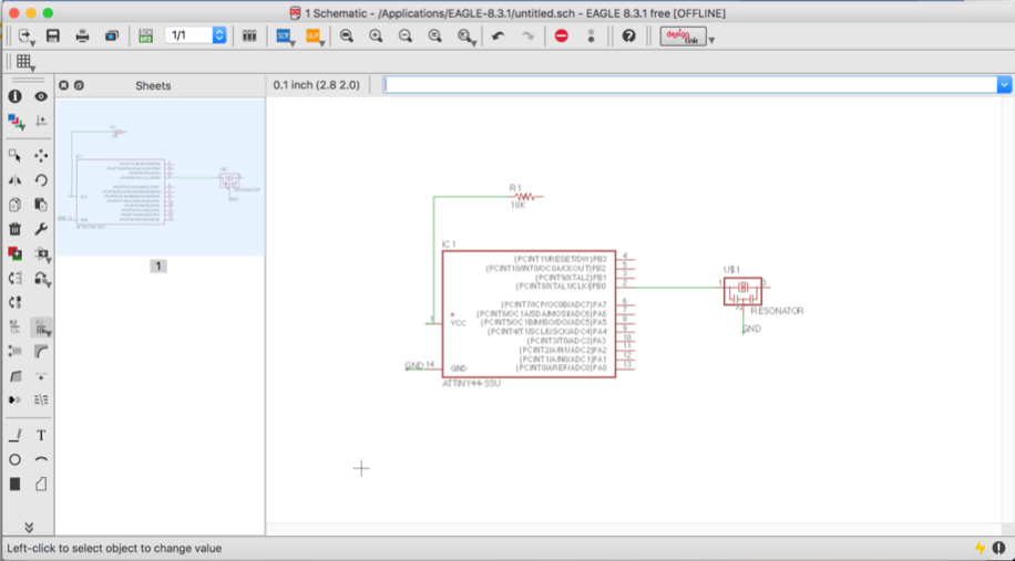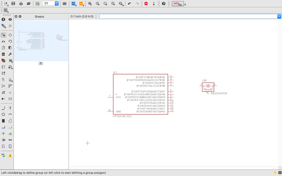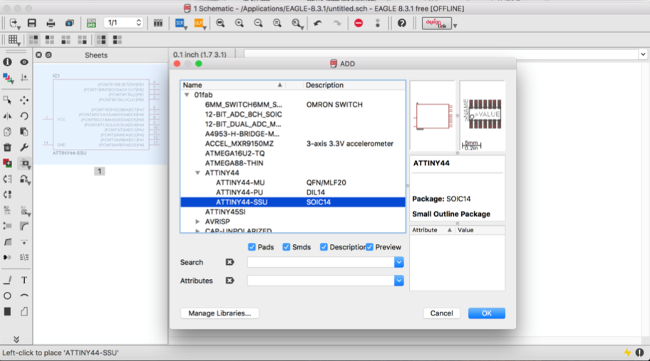 For example: Add ATTINY 44- SSU (in the fab.lbr library which is the same one I used)