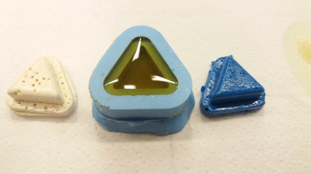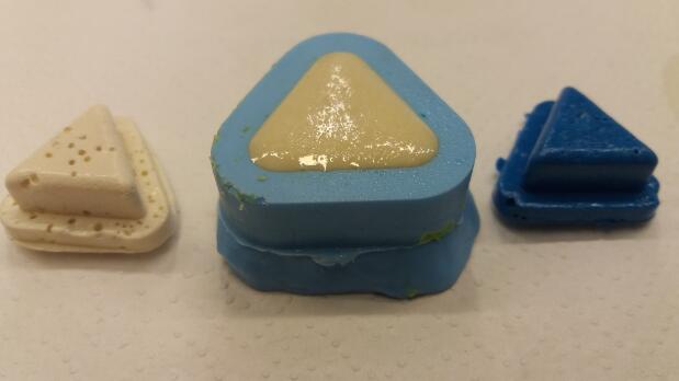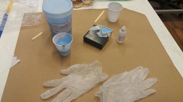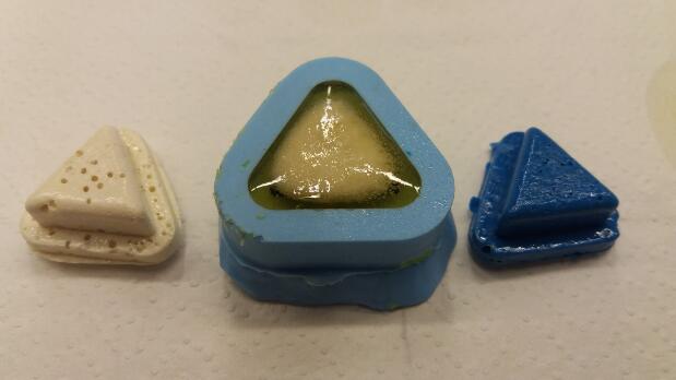 The object mold (blue rubber silicone) was good. I understand the result was nice. In order to get a good moisture, there was the need of a scale. 1.0 part of rubber to 1/40 parts of catalizer. Small variance wasn't perceptive, but when I tried to mix both parts without a scale (under my instincts orientation) it didn't work. I have the same results from other students.
