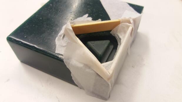 Working with the piece I got - wax milled counter-mold - I made a silicon (blue) mold. From that, I was able to reproduce the shape a few times. Pictures below will tell more.