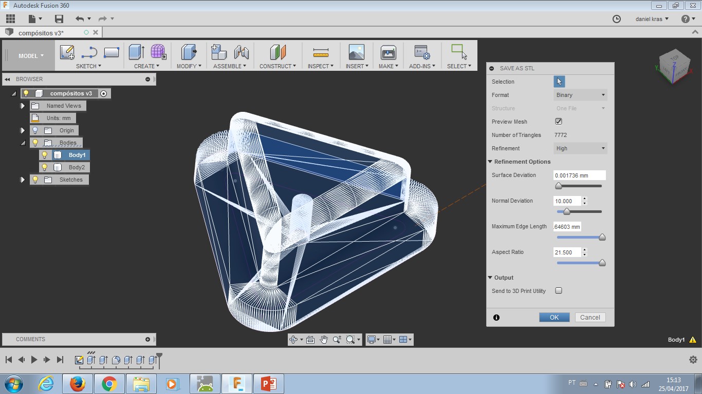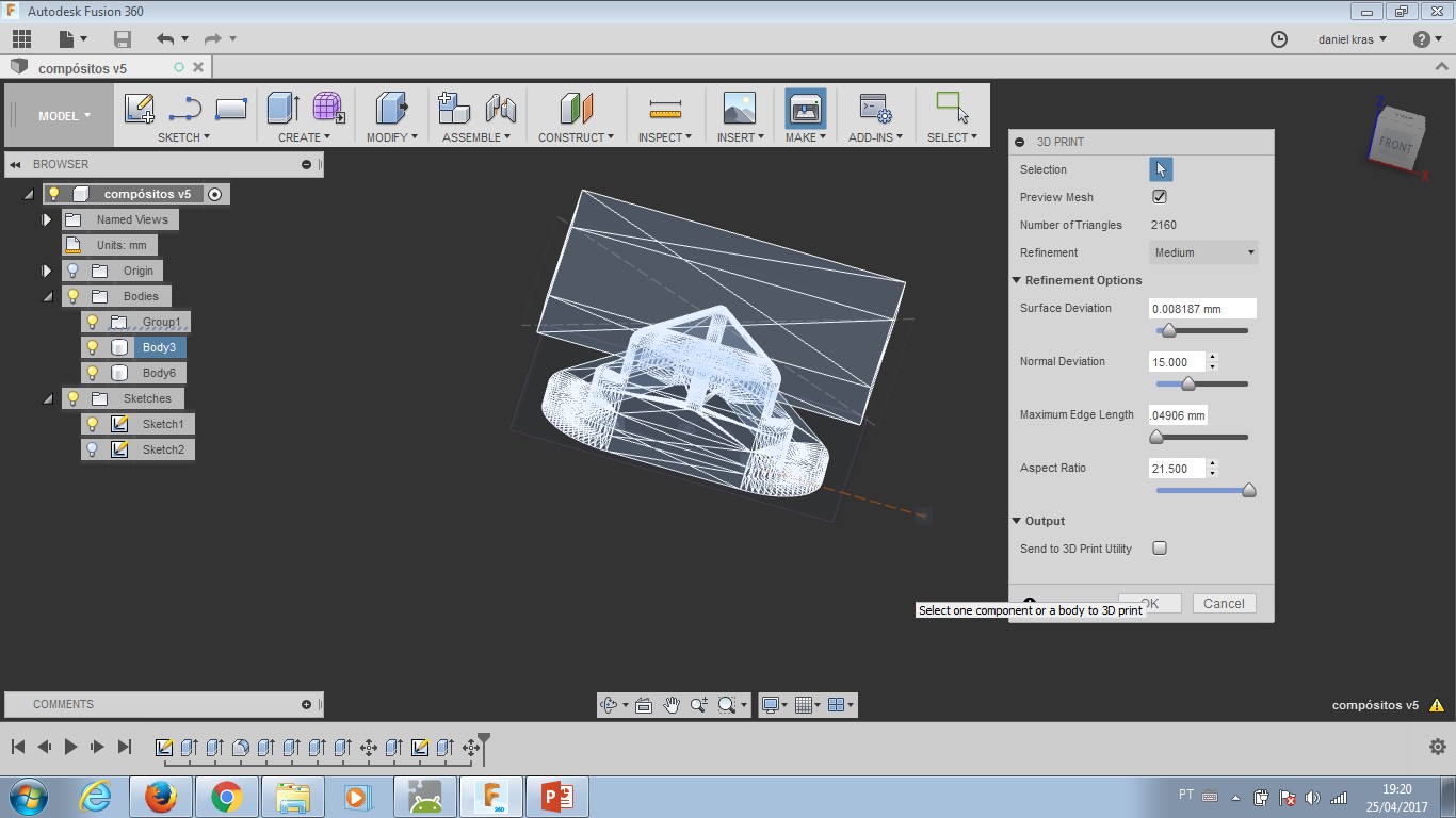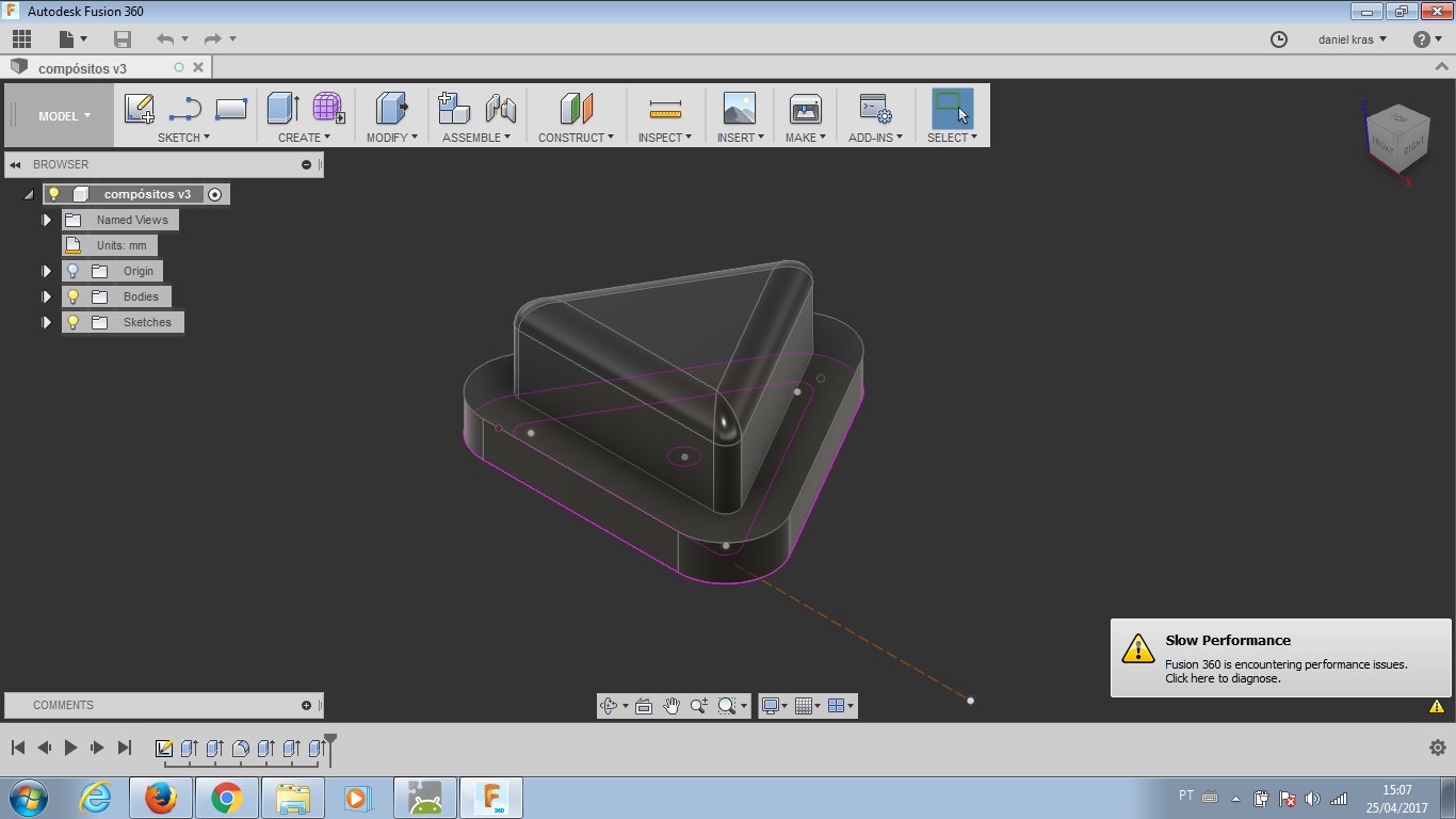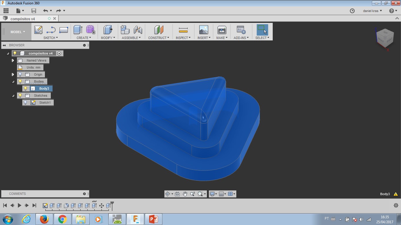I did the design with Fusion360 and then made a gcode with FabModules. After the first milling completed, I wanted to redesign the shape and mill it again. That was not possible. FabModules stoped working for 3D processing in my computer. I tried diferent browsers (Opera, Chrome, Mozzila and IExplorer) without any success. My tutor Kenzo is discussing this error with other tutors from the FabLab network.