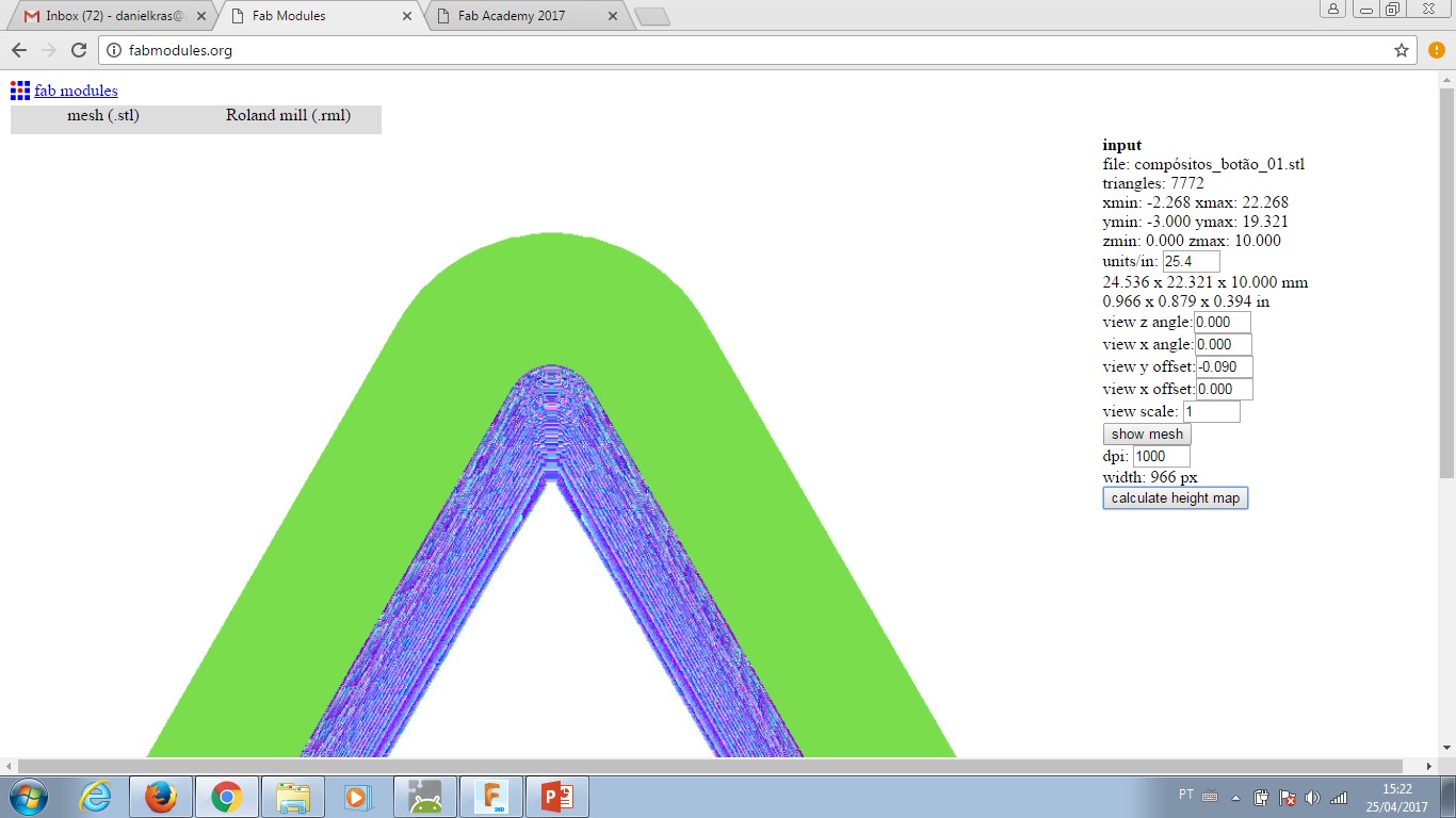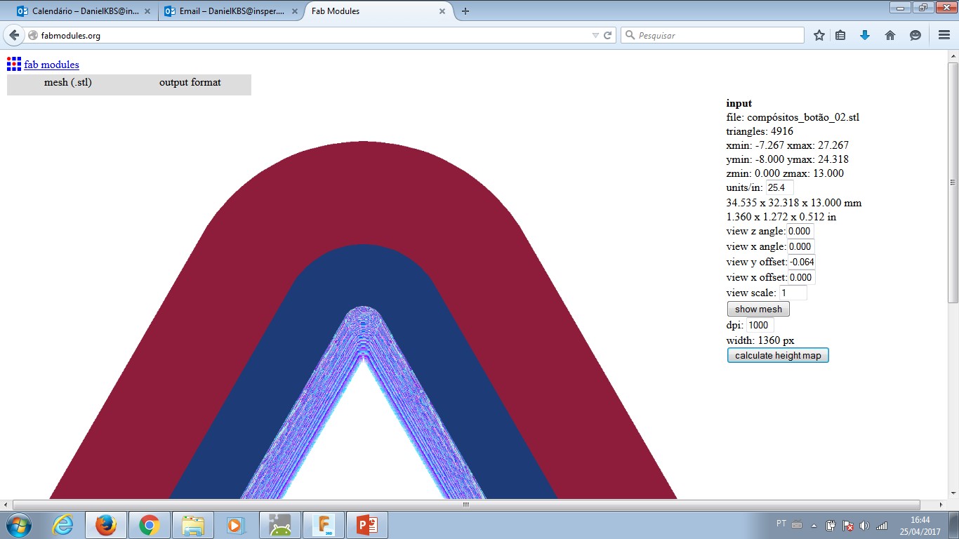 --- Click the right menu: calculate height map - this will turn each different height in a colour layer. These layers are gonna provide input to CAM and generate .rml machine code.