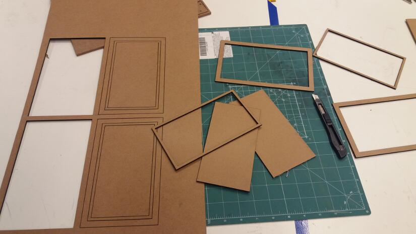 At first, InkScape was the tool I choose. But I changed to Fusion 360 in orther to make the round corners I wanted. InkScape is not the software I had understanded yet. But, in the end, I moved back to InkScape and did some boolean operations to cut the parts I intended to have. From InkScape, I saved a pdf file and cut the mdf - 3.0 [mm] - with Epilog laser cut mini.