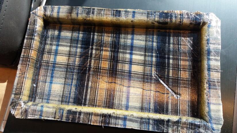Again thinking about the coffee machine and how to enjoy it when ready, I thought building a tray to serve two cups of coffee would be nice. As basic material we had Imperveg resine and a cut of plaid fabric.