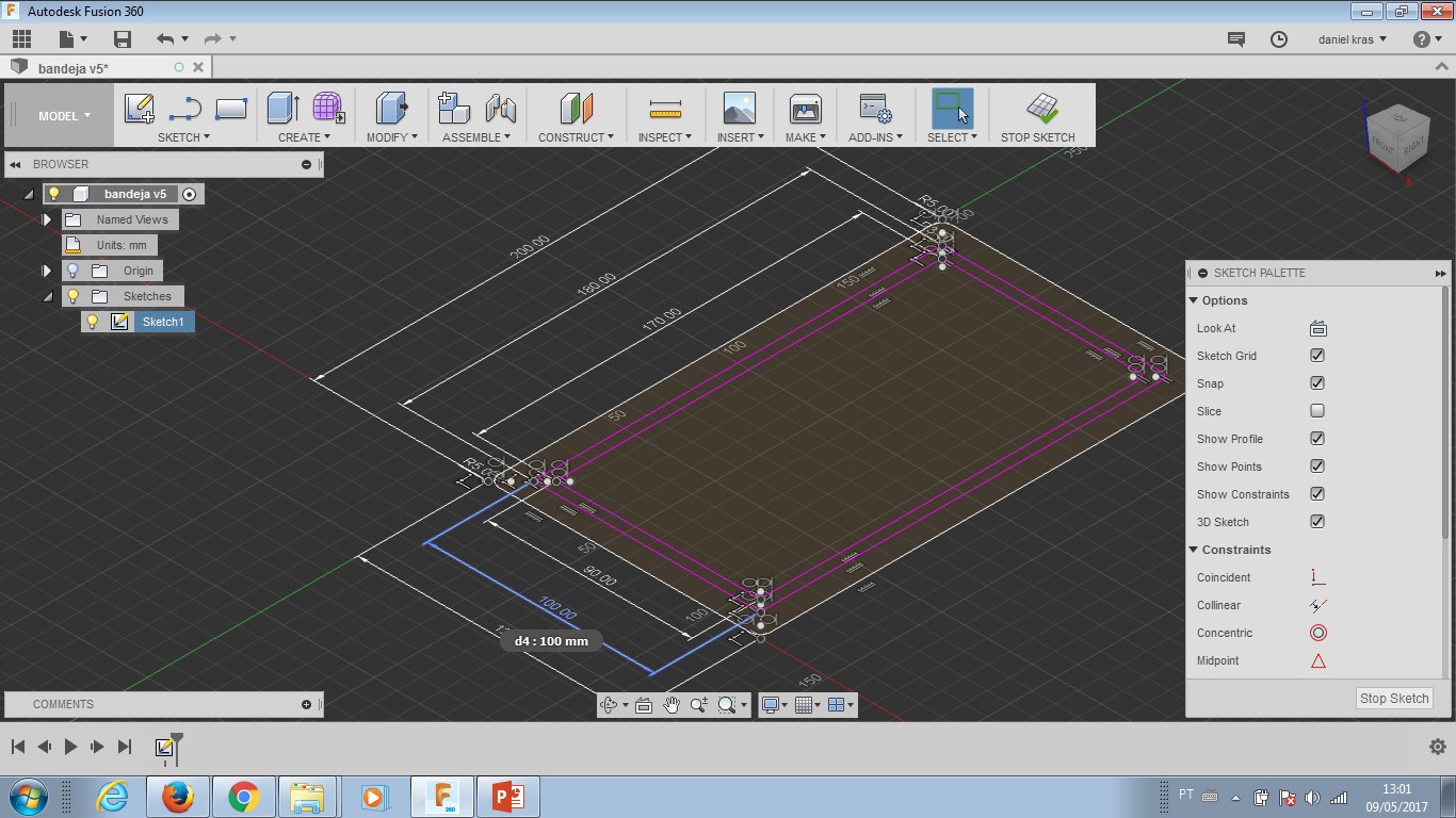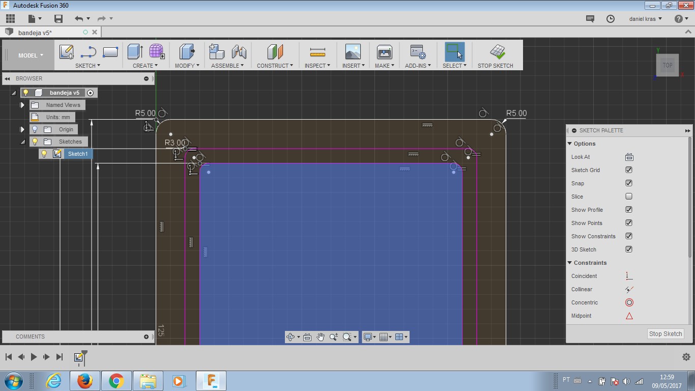 - measure how many layers of fabric would be necessary for the tray side wall thickness (5.00 mm).