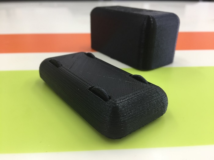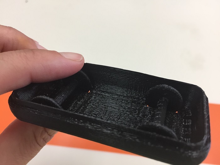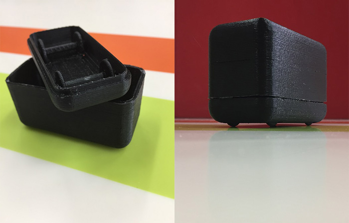 I’ve imported each STL file into Cura and made the file’s Gcode for printing in Hephestos 2 printer. The bottom and the wheels were printed in a single operation. The parts were placed turning the fillet side up in order to achieve a fine casing. I set the fill to 80% for securing it not to be separate in the middle because of the wall’s thin thickness.