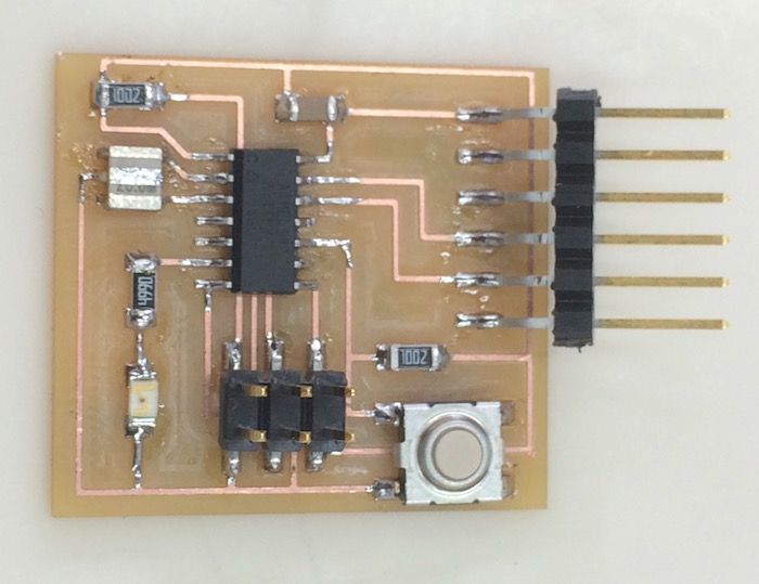 For this weekly assignment I redraw the Echo Hello-World board and added to it a button, a led and two resistors. Here you can see the original board and its design.