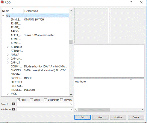 Added Fab library in eagle by downloading Fab.lbr given in fab academy .org for getting 1206 design components