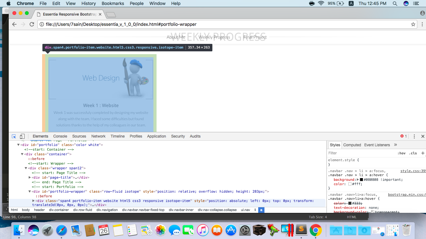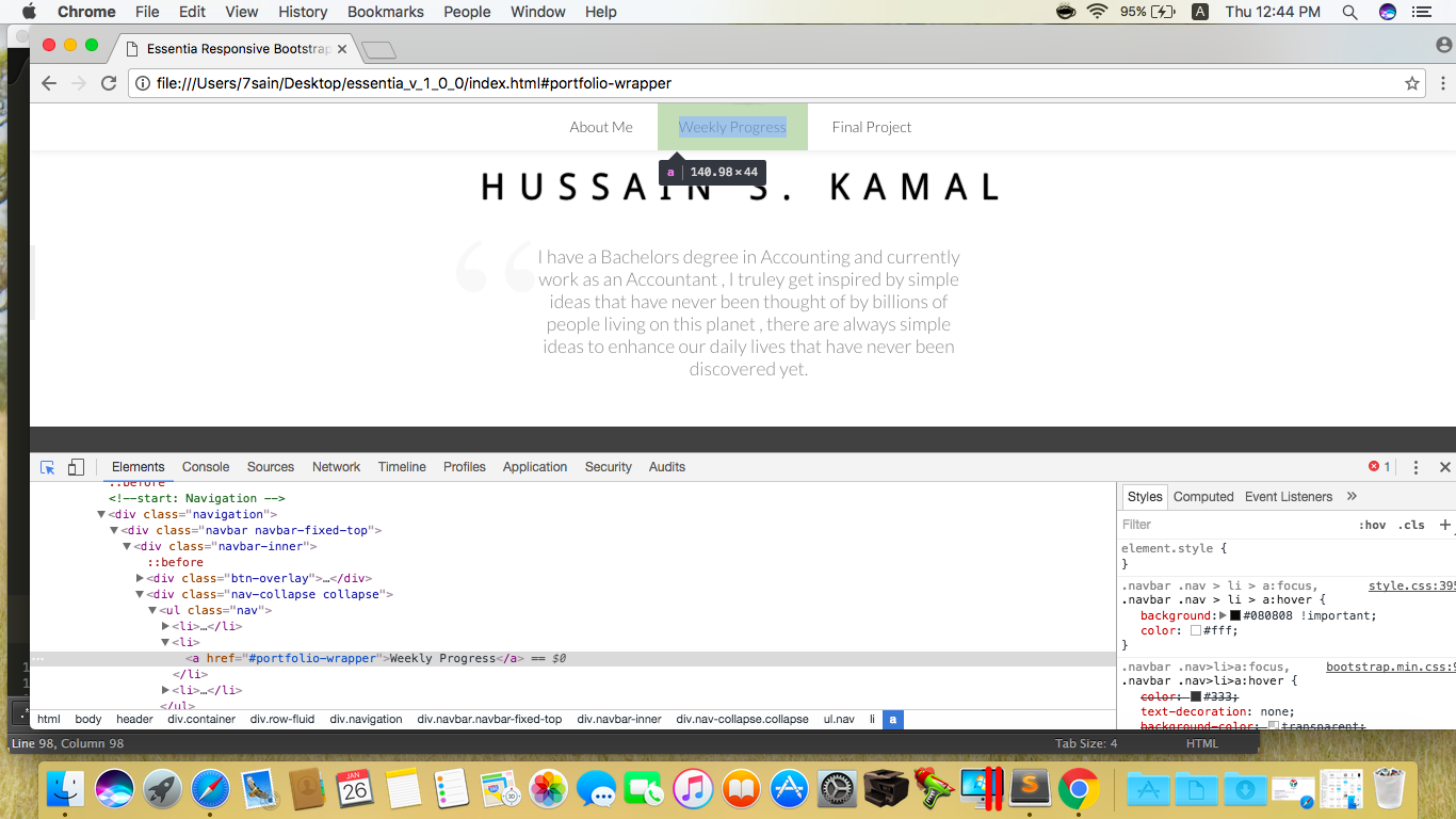 Google Chrome browser , used inspect to modify my website