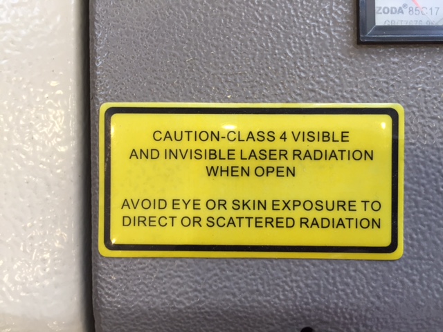 This is the caution sticker on top of the machne which mainly warns about eye and skin contact with the radiation.
