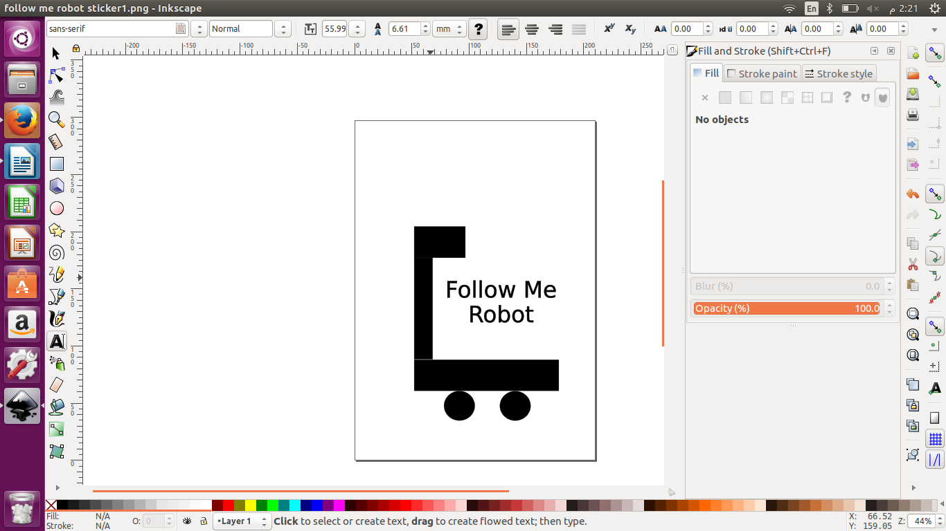While using InkScape to Design my logo sticker , I used rectangle and circle shapes to design a logo for my final project. I felt that this software has limited capabilities. For example inserting a rectangular shape or a circular shape seems like rocket science to ths software compared to the normal paint program in Windows its much easier and user-friendly than InkScape. The main problem I faced was mainly finding the different available tools and using the options.