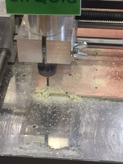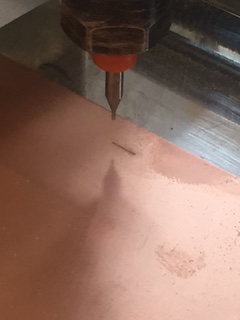 Above image shows the milling head drilling the copper board after cutting my design of course and changing the bit.