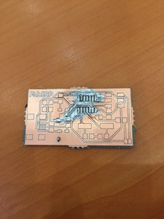 My first mistake I soldered a little bit of lead on the places of the pins of the attiny to easily put the attiny later and just apply heat so the lead would all melt and solder with the attiny pins , but unfortunately it turned out to be a mess lead got everywhere and ruined my electronic board and I had to do it again.
