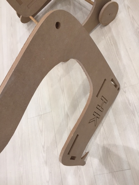 This is the bottom side of the basket. Later on I changed the length from 30 cm to 50 cm to widen my cart. The 4 press fits are 10 cm x 1.8 cm because the wooden sheet I’m cutting is 1.8 cm thick. And I fixed a .15 mm tolerance for the press fit slots on the main cart shape , so the holes will be bigger to fit the press fit.