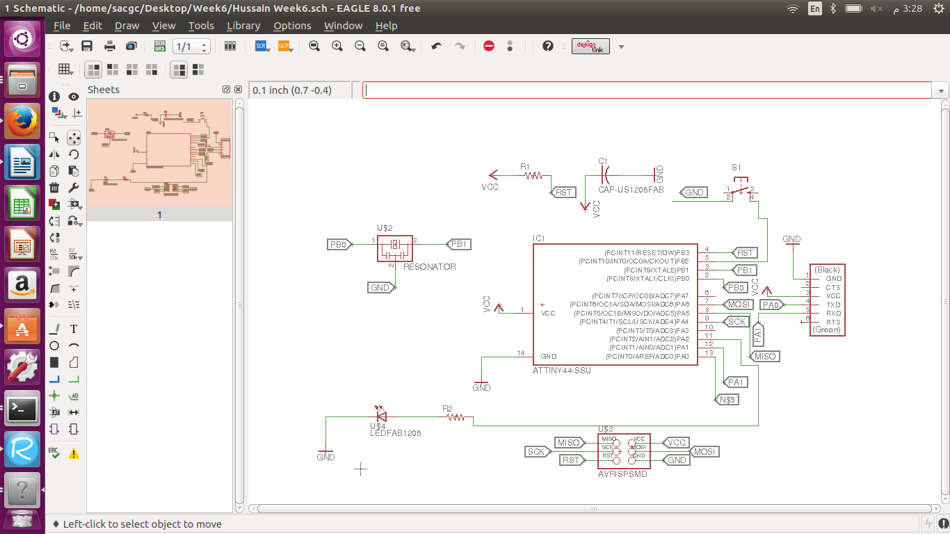 The board I designed in week 6 had a problem which was that I forgot to label Attiny pin # 13 as shown above.