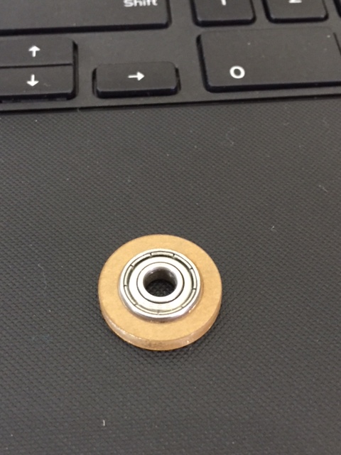 This image shows the acrllic bearing I cutted using laser cutting fitted into or metal rod thats holdingg the stepper motor.
