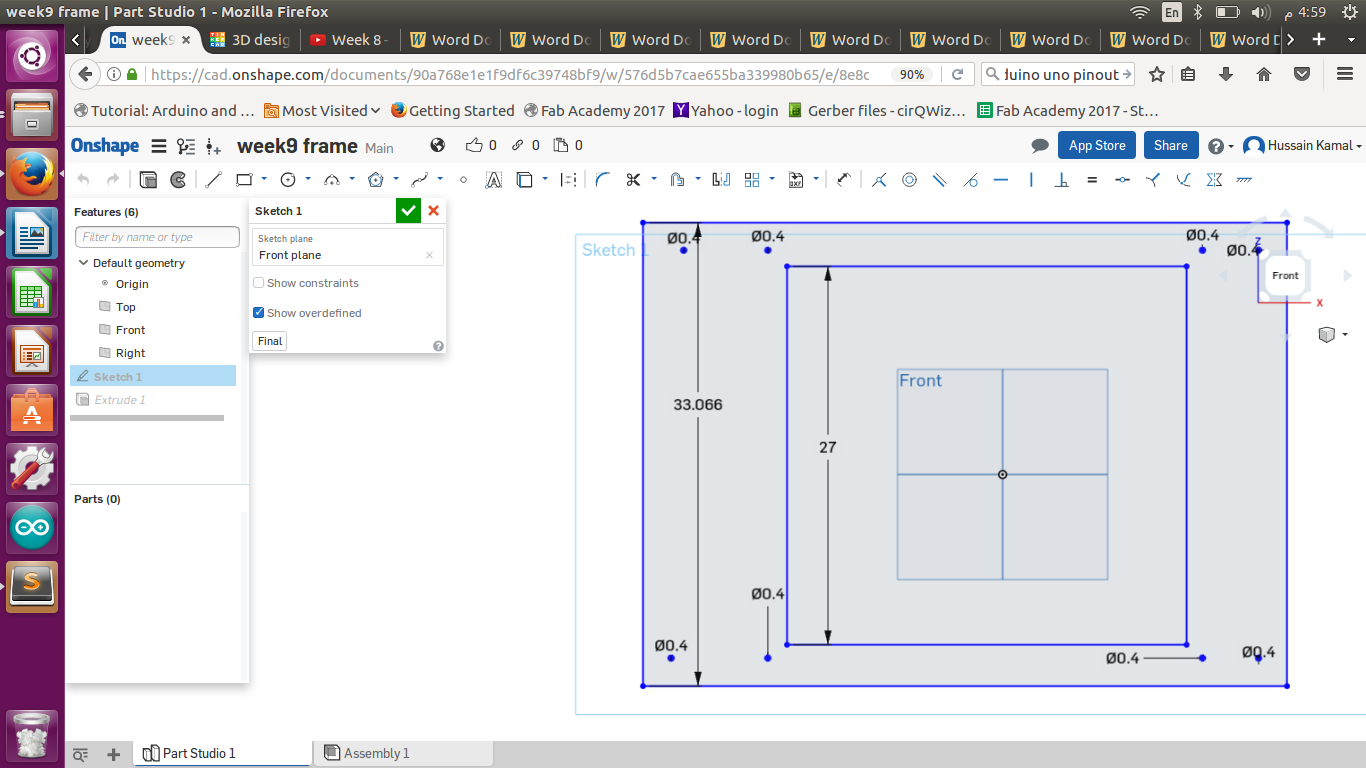 Above are the parameters I used to design the base , and of course I tookk accruate measurements of the places of the screws I had to fix.